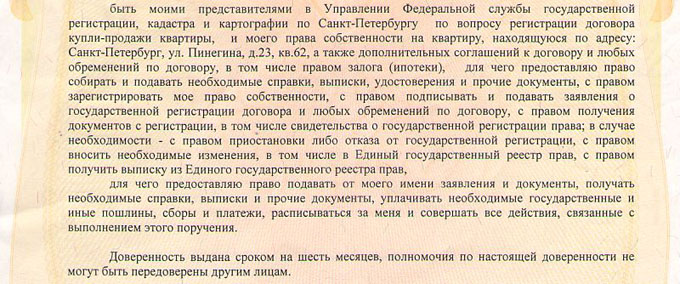 Доверенность на право совершения сделки с квартирой