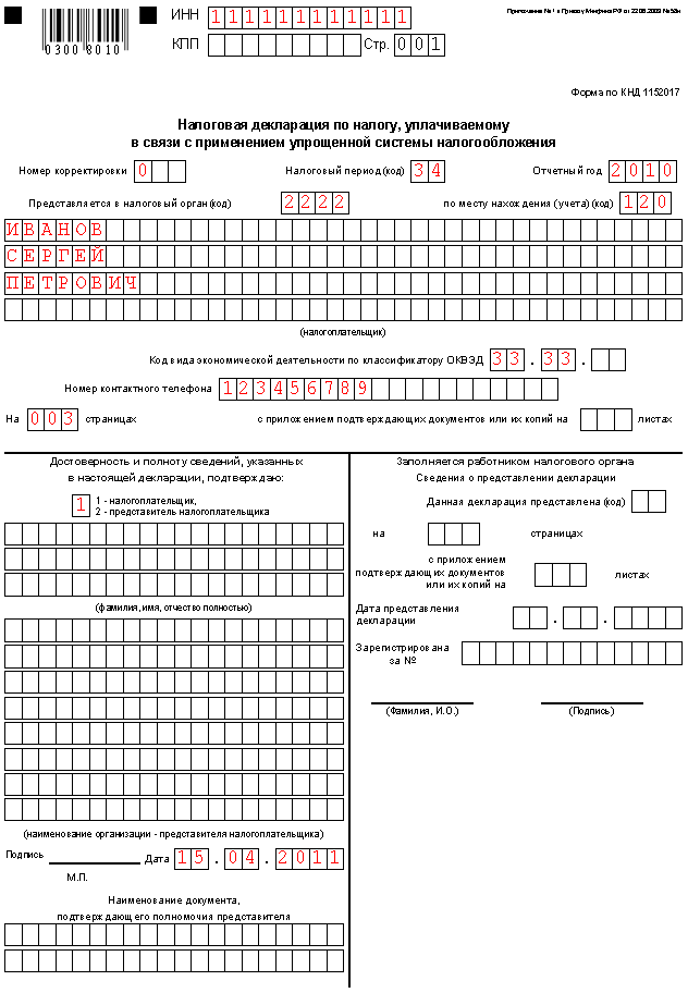 Заполнение налоговой декларации по УСН выполняется налогоплательщиком на специальных бланках с точным соблюдением действующего законодательства - в соответствии с главой 26.2 Налогового кодекса РФ и иными законодательными документами субъектов РФ.