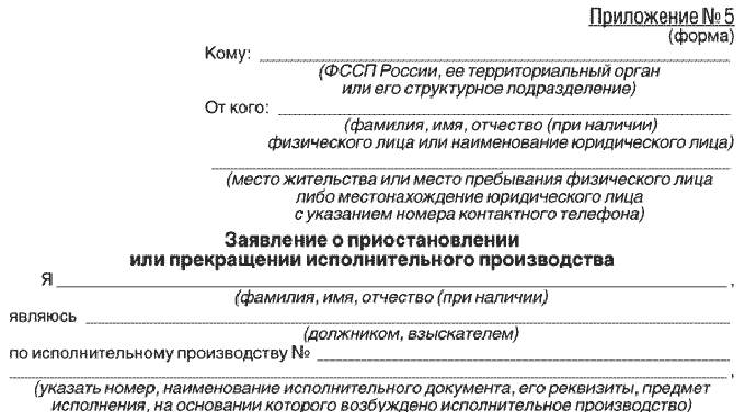 - подробно описываются обстоятельства, в соответствии с которыми прошение о приостановке производства направляется приставу;